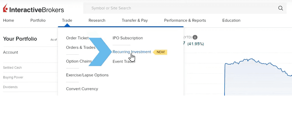 Navigate: Click "Trade" in the main menu and select "Recurring Investments".