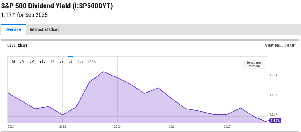 S&P 500 dividend yield: approximately 1.15%