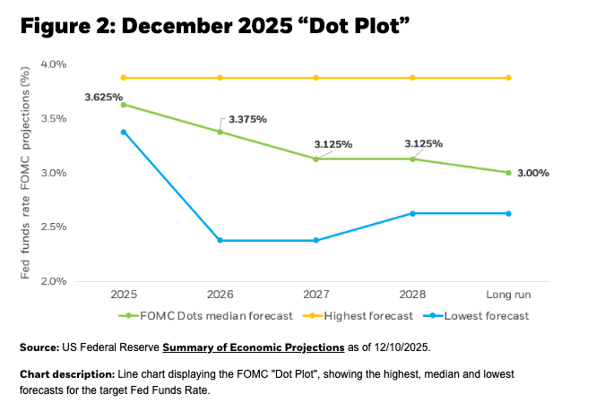 Following an aggressive easing cycle that began in September 2024, the Federal Reserve now finds itself in what economists call a "data-dependent pause." The December 2025 Summary of Economic Projections indicated consensus for just one additional 25 basis point cut in 2026, though market expectations diverge significantly from Fed guidance.