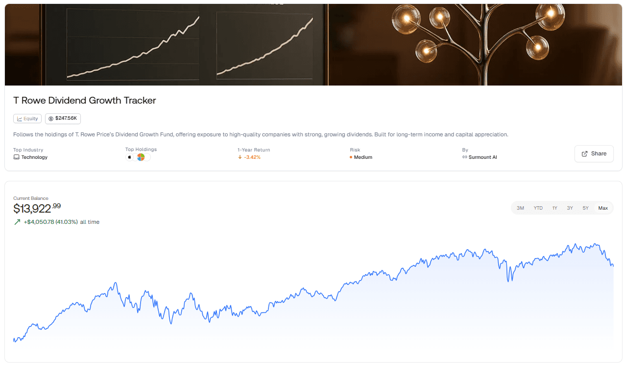 One way investors could actually implement this is through Surmount’s T. Rowe Price Dividend Growth Fund.