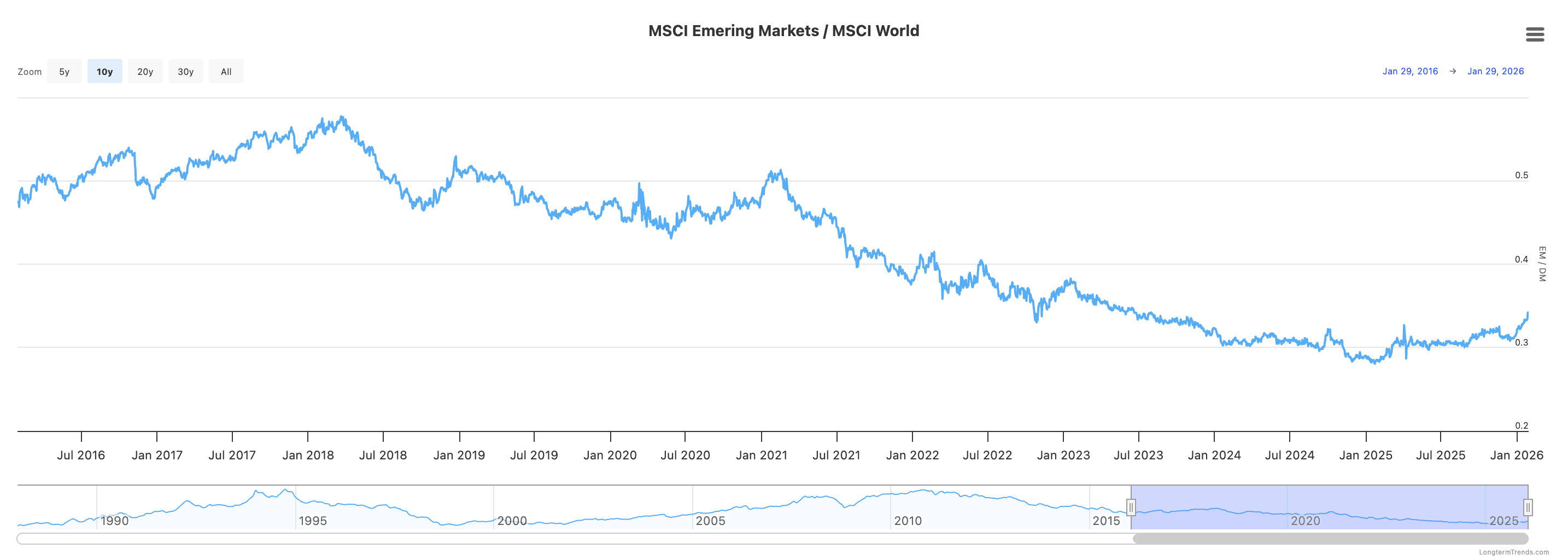 MSCI data shows rolling six-month correlations between EM and developed market equities fell below 0.45 by May 2025—the lowest level in five years. This suggests forces moving EM prices are distinct from developed markets, offering genuine diversification benefits.