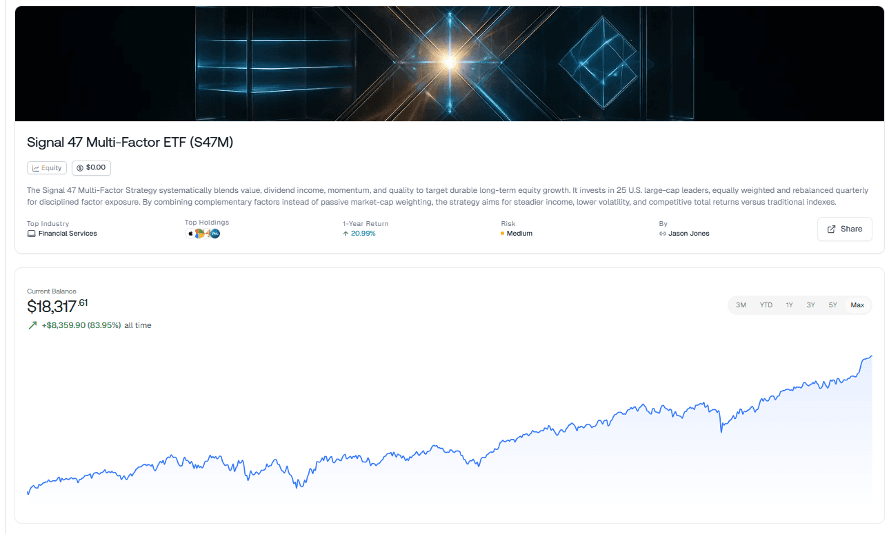 One investment strategy that is almost perfectly designed to exploit the dynamics of volatility we’ve discussed is Surmount’s Signal 47 Multi-Factor ETF strategy: