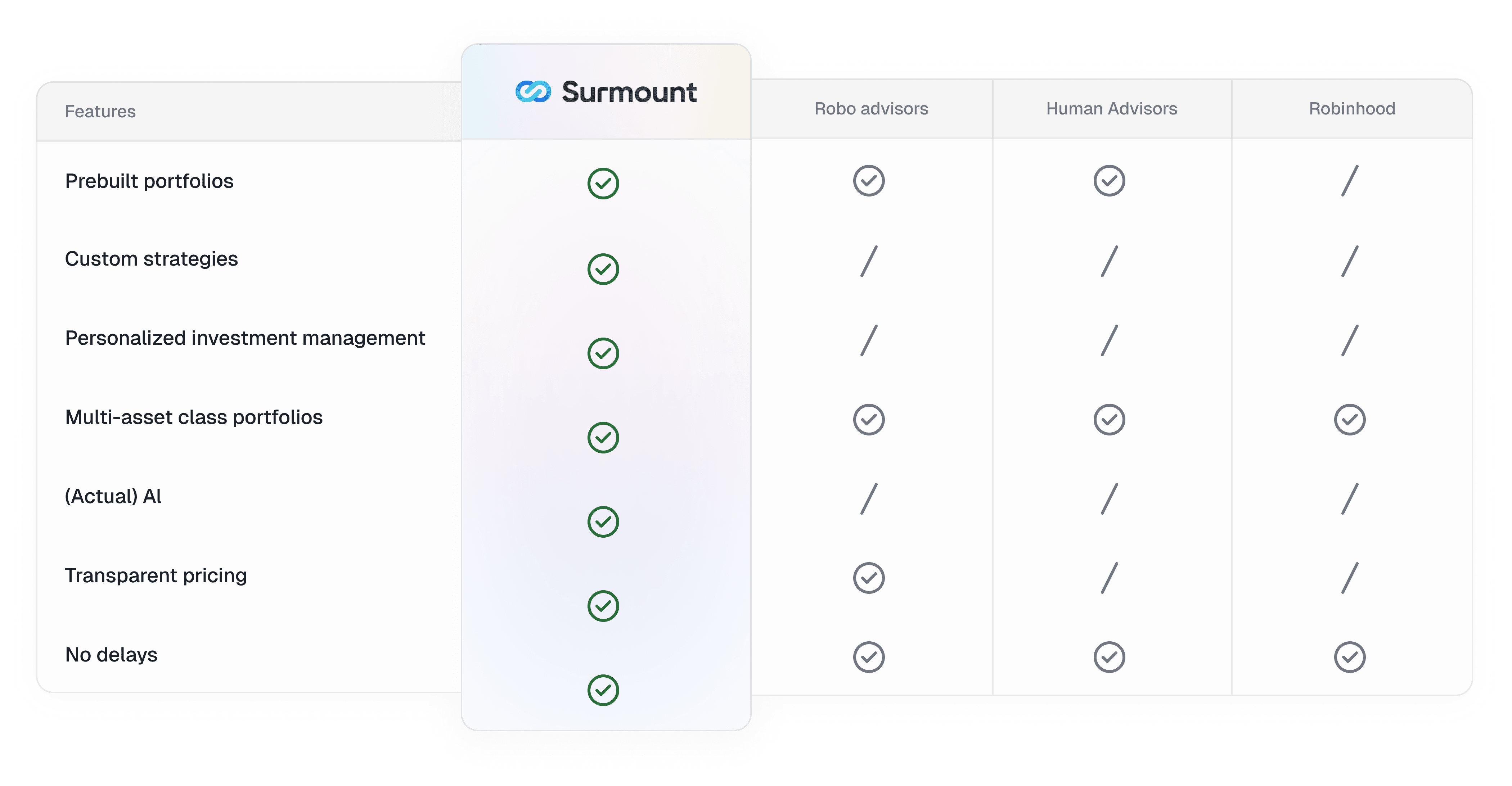 Surmount democratizes access to passive trading to everyone. It's an incredible vision as a business and as an agent of changing how the world invests.