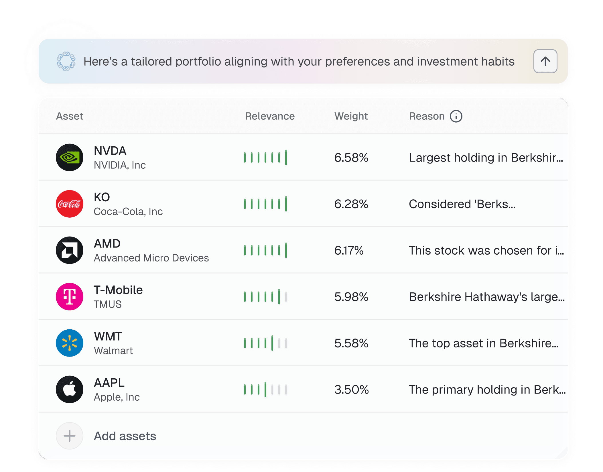 Bespoke portfolios automatically built and optimized for you, tailored to your goals, risk level, and investment style.