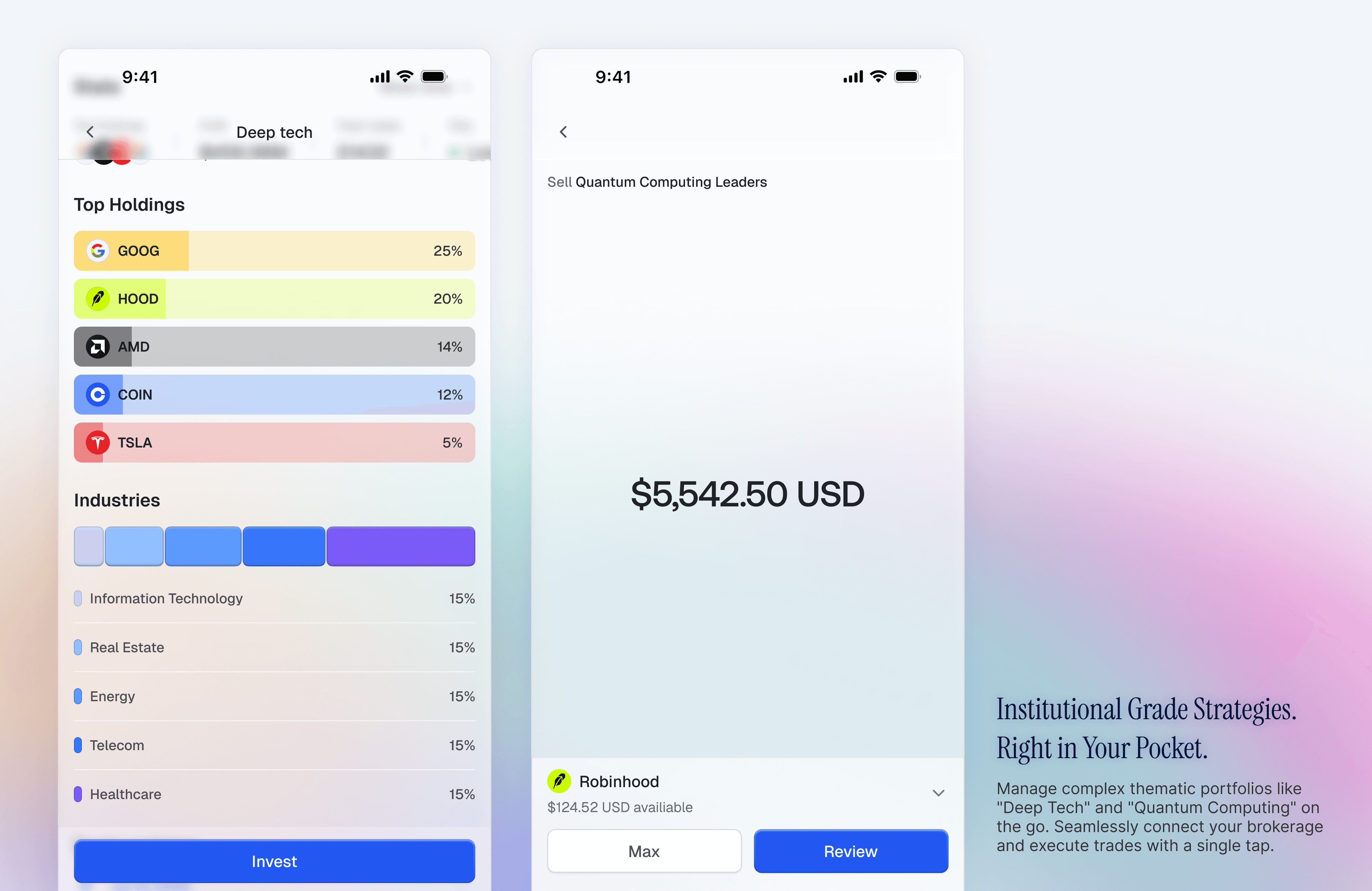 You can create a personalized portfolio, explore strategies, view your dashboard, track positions and transactions, and invest directly from your phone.